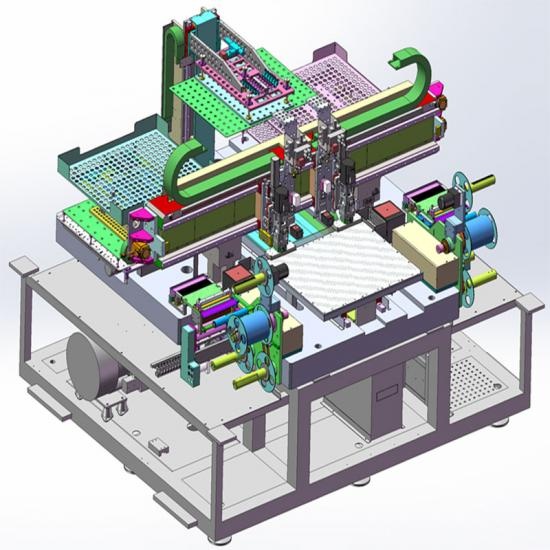 Această mașină automată laminare prin presare în automatizarea industrială. Adoptă cap dublu și poziționare vizuală pentru a apăsa automat hârtia adezivă de către robotul de încărcare și descărcare automată a materialului, apoi a folosit motor liniar și riglă de grătar pentru a obține viteză mare și precizie ridicată. Precizia de montare poate ajunge +/-0,05 mm.