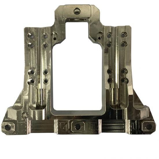 Prelucrează accesorii de turnare de nichel pentru mașini semiconductoare. Planeitatea și perpendicularitatea sa este de până la 0,01 și 0,015 mm și înclină toate găurile pentru părțile întregi acoperite cu nichel satinat și foarte strict la suprafață, fără defecte și debavurare.